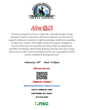 Teaches young drivers how to make safe, respectful & legal driving decisions. Used in conjunction with Junior Operator License laws to support violations connected to night & passenger restrictions, speeding & other poor choices. This highly interactive program, designed to course-correct poor driving behaviors before they are perpetuated, provides role-playing opportunities & group exercises that show young drivers how to take control of situations & become responsible for their actions, attitudes & driving behaviors.