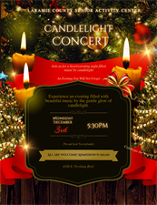 All are welcome to join us for a Candlelight Christmas Concert at the Laramie County Senior Activity Center on Wednesday, December 3 beginning at 5:30 pm. Enjoy classic Christmas music, pie, coffee, and a hot chocolate bar. Cost $10 per person. We promise it will be a magical way to begin your Christmas season!