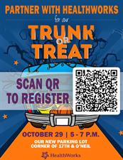 Do you want to decorate your car for Halloween and participate in our Trunk or Treat? HealthWorks is looking for people and businesses to join us on October 29th and hand out candy during our Trunk or Treat.