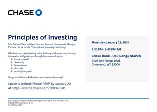 Join Private Client Advisor Grayson Sipe and Community Manager Victoria Curtis for the "Principles of Investing" workshop.